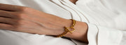 The allure lies in its simplicity. The gold plating isn't ostentatious but rather exudes a subtle luxuriousness, effortlessly complementing any ensemble. Its ability to stand alone as a refined accent or stack gracefully with other bracelets for a bold, fashion-forward look showcases its versatility—a true chameleon of the accessory world.